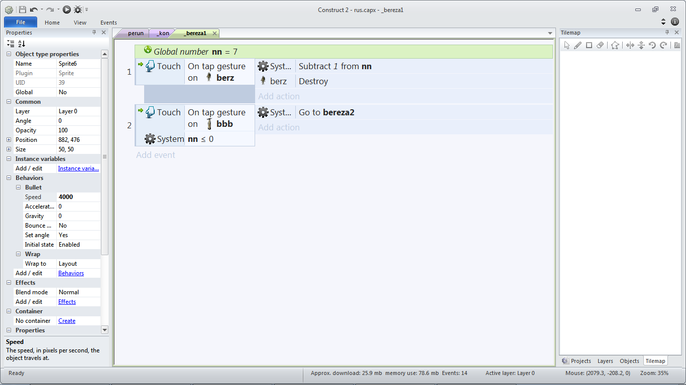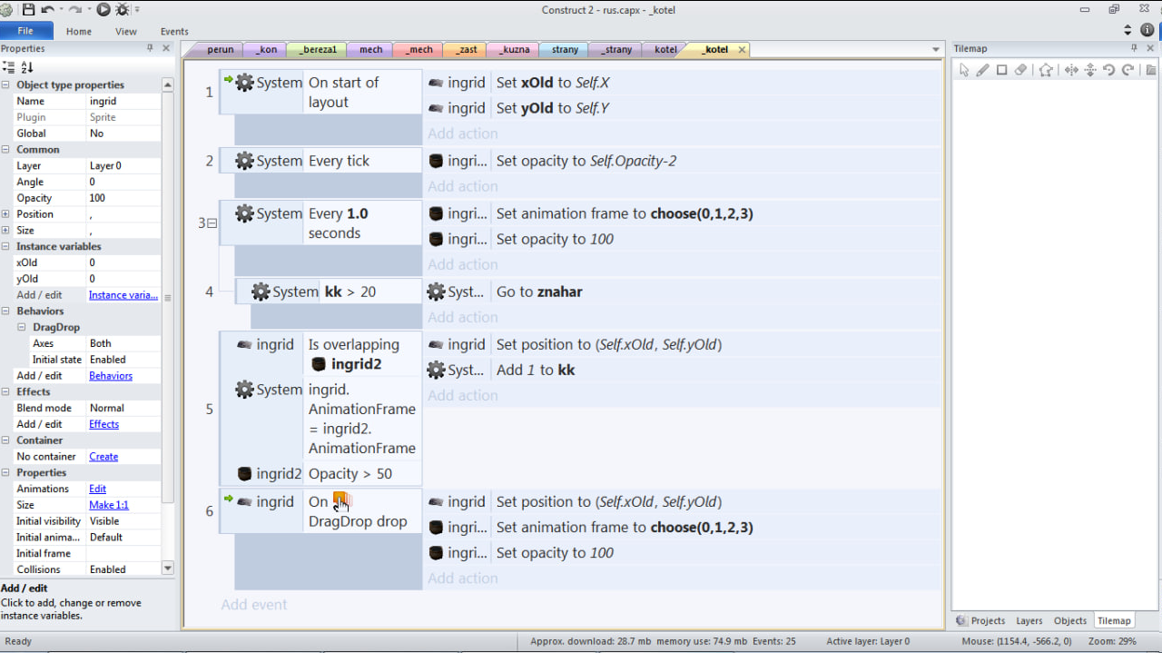 Всё, кажется с основными механиками разобрался, осталось нарисовать штук 50 спрайтов, добавить звук и анимации куда ещё осталось, ну и баги и если успею ещё ассистента добавить... Ну если до 0:00 3 числа продлят, иначе будут совсем уж одинаковые девочки с наклейкой "ведьма" на лбу и без ассистента