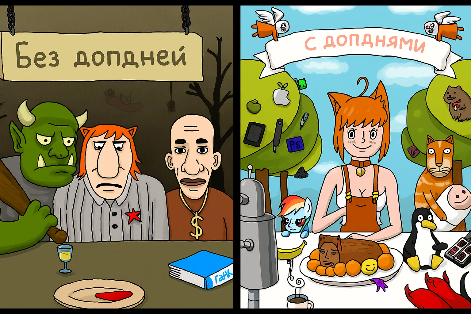 >>1040833 Ну те кто 5/2 работают основное времч оазработке на выходных выделяют, поэтому если допдни выпадают на субботу и воскресенье(а так всегда осознанно делается) то им это очень кстати