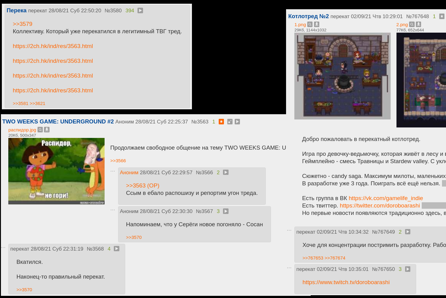>>1040982 Я не успею сколько бы оп допдней не дал. Поздно понял, что именно буду делать, а так же слишком длинная история. Но мб допилю в целом, первая же херовина, очень многому научился в процессе и еще научусь. Хз буду ли отправлять для архива, как орг предлагал, хотелось бы, но рядом с тем, что тут другие наделали моя игра как куча говна на зеленой лужайке.