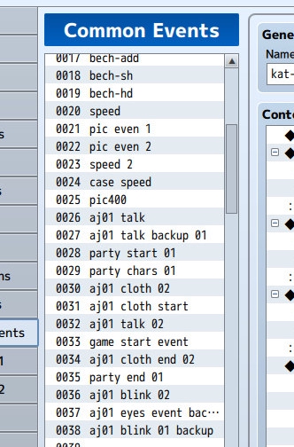 Сап, а не доводилось вам встречать решения, чтоб можно было ивенты группировать или как-то ярко тегать? А то в пректе вечно допиливаешь всякое и поскольку ивенты идут один за другим - 1,2,3, то просто потеряешься в этом хаосе. Я их тегаю конечно, это видно в начале имени к чему относится, но б предпочел чтоб их можно было перетаскивать в списке, чтоб они рядышком стояли, ну или сворачивающиеся меню как пик 2 в том же рпгм, типо на плюсик жмешь, да там и перетаскивать можно, а для ивентов жаль не сделали также.