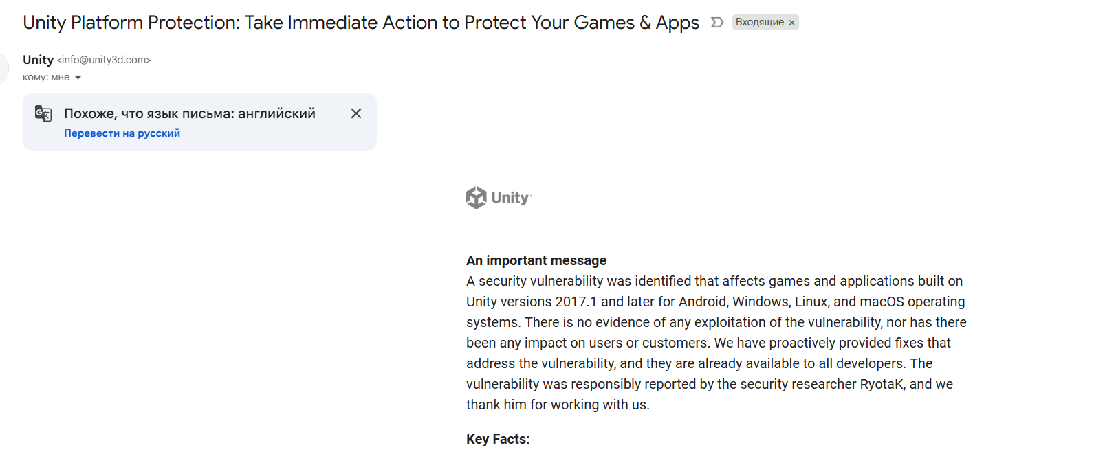 Коротко: Unity экстренно чинит критическую дыру CVE-2025-59489. Баг позволяет через некоторые команд-лайн аргументы подсунуть приложению на Unity «левые» библиотеки/файлы и выполнить код (в пределах прав процесса). Под удар попадает всё, что собрано на Unity c 2017.1 и новее — прежде всего Android, но также Windows/macOS/Linux. Патчи уже выкатили 2 октября 2025. Доказательств атак «в дикой природе» нет, но обновляться нужно срочно.
