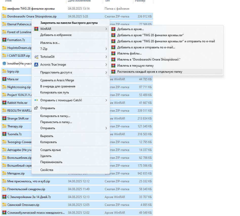 >>1041954 Гайд: Ставим разрешение на скачивание нескольких файлов. Скачиваем (у меня два архива получилось), извлекаем все в папки, кроме innother (который почему-то не упакован. Нажать с зажатым ctrl, если вдруг не в курсе).