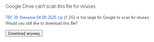 >>1041910 (OP) Гугл-диску нужно разрешение на скачивание нескольких файлов. Вот почему в прошлый раз я не все скачал. У меня запрос на это разрешение даже не появился