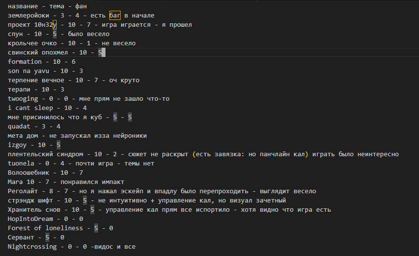 А вот идея заставлять всех в будущем играть в игры конкурентов мне не понравилась. Разработчики же приходят делать в игры, а не оценивать чужие, у кого то может времени нет оценить не по стримам, всё же люди все взрослые, с работой и т.д. Плюс количество игр для оценки может стать и куда большим, чем в этот раз. Так что либо оставлять как есть (участники могут голосовать как считают нужным и делать впечатления в т.ч. и по стримам) либо оставлять одних лишь судей. Какие-то системы контроля того, поиграл ли участник, тоже считаю излишним.