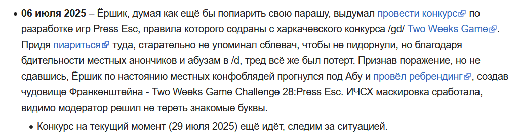 >4. Продублировать конкурс на итч.ио Так съеби уже на итч ио с концами и создавай там конкурсы в потоке сотен других, придумывай там какие хочешь ебанутые правила.