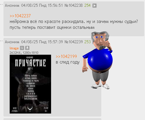 И я думаю вам надо поаккуратней с паранойей. Котёл вон левого челика (автора ершика и автора совсем другой финалки) принял за тебя, а ты меня то за Димасика, то за Котла. Бедняга. Будь я кем-то из них, ты не был бы допущен на этот конкурс, очевидно же.