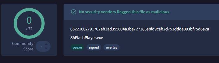 >>1042664 Это мнение говноантивируса от мелкомягких. Если я загружу уже распакованный плеер, то все будет хорошо (вероятно потому, что он подписан). По крайней мере хеши совпадают, т.е. на моей машине ничего не заражено (как минимум, этот файл не заразился). А вот если загрузить весь архив с игрой, то получаем ЗЛОБНЫЙ ШИРУС.