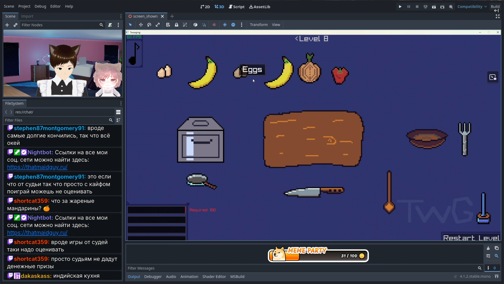 >>1043073 нет большей награды на джеме, чем смотреть, как в твою игру играют, что-то подъебывают в чате, бугуртить с того, что обосрался и что-то сделал неправильно, и оно пошло наперекосяк