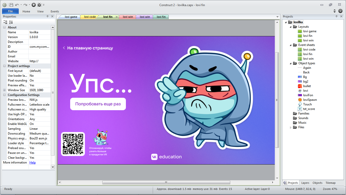 >В самой игре должно быть упомянуто, что игра сделана для этого конкурса. Жду от организатора отчет со скринами по этому правилу. Кстати, можно было и пораньше его сделать, чтобы зазря не тратить время на оценку дисквалифицированных игр.