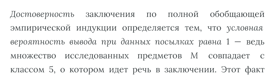 >>1042937 Ты очень удобно слился, когда наконец понял, что не вывозишь за философию. Ты, видимо услышал, что эмпирические суждения, это суждения, основанные на опыте, но не понял, что это значит. А значит, что это знания, буквально полученные при помощи чувственного опыта. Обобщение этих суждений не является корректным логическим переходом и выводит следующее суждение из класса эмпирических. Кстати, ты так и не ответил из-за чего так порвался.