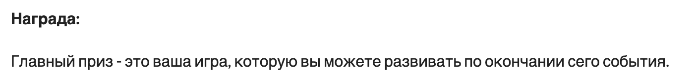 3. >Команда — до 3 человек. Одна команда — одна игра Лазейка: Формально — в команде 3 чела. А по факту — можешь быть внештатным рабом на других проектах. В титрах не светишься — значит, не участник. Хочешь сделать 2 игры? Делай под другим ником. Судьи вряд ли будут палить айпишники.