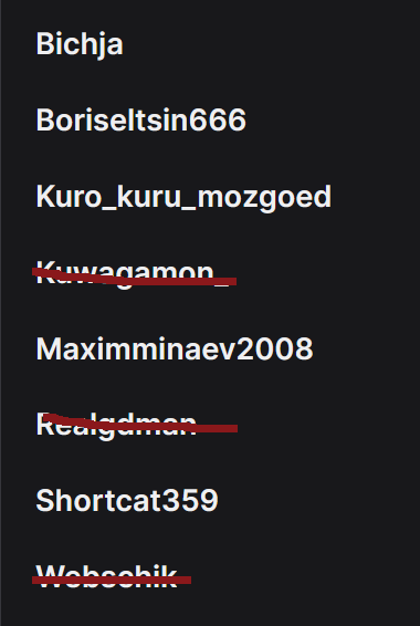 Оказывается судья-то один и незаявленный. Остальные только для вида демократии. Съебал с харкача, а эта страна в душе осталась. Первый раз с истории твг я считаю орга хуем, кстати. Никогда и близко не было настолько неадеквата.