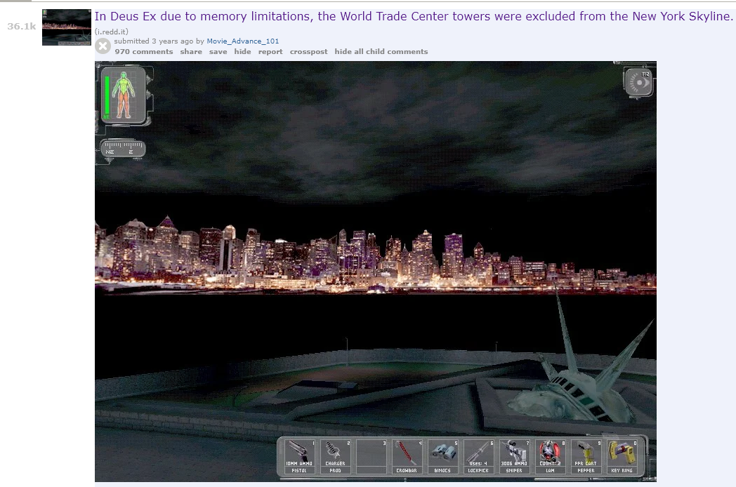 А распространялись эти древние игры на дисках, где буквально каждый байт был на счету и игру сжимали как могли. Плюс считывание с дисков было медленным и ресурсы нужно было располагать чётко по ходу движения лазера по диску. Всё это в сумме могло заставить дизайнеров обрезать небоскрёбы до ровной, экономной полоски, потому что в те времена разработчики игр заботились об игровом опыте, чтоб игроки не бугуртили от медленной загрузки и багов.