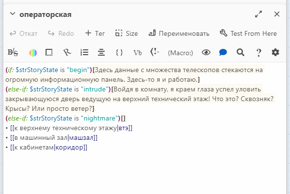 >>1051819 > Попробуй twine вместо Godot или для прототипа, который потом можно экспортировать и пересобрать игру на Godot. Я как-то пробовал. Мой внутренний программист нахуярил туда в пассажи логики, стейтов, параметров, и экспортер имеющийся ничего этого не видит, экспортирует только простой текст, которого в итоге оказалось очень мало - большая часть контента (который проходится 5 минут неторопливого чтения) оказалась под скобками длиннющих иф-элсов.