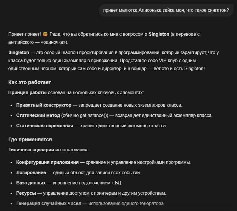 >>1052456 >Как синглтон приводит к лапше? Очень просто: синглтон - это ГЛОБАЛЬНАЯ штука, а "глобальность" знаешь что означает на практике? "Глобальность" - это как выставить голую жопу на заполненной торговой площади и принимать всех, совершенно без ограничений. Найдёшь отца потом? Конечно же нет, через твою жопу 1000+ тел прошло.