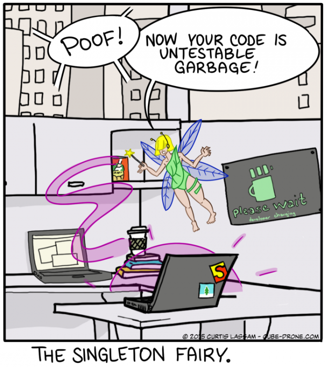 >>1052315 > Это не синглтоны - их можно заменить. Глупость какая. Если синглтон можно заменить, он от этого не перестаёт быть синглтоном. Давай определение синглтона в студию.