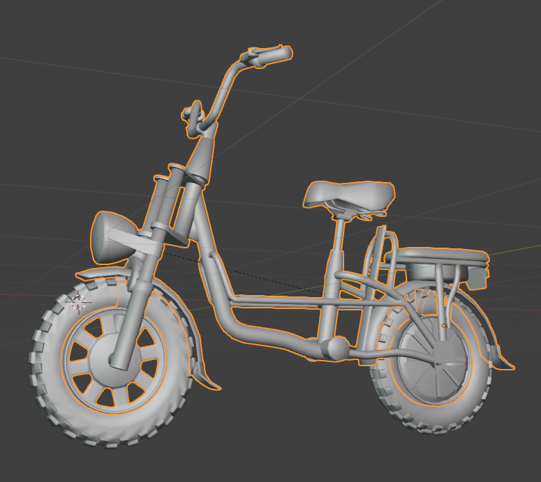 Растапырил таки руки в Т-позу, вроде получилось окей. Закинул модельку в миксамочтобы прочекать как пойдет анимация. Думаю, результат приемлемый, смысла задрачивать модель еще больше нету, все равно не художник. Нашел модельку электро колхозника на скетчфабе, повезло. Модель курьерского рюкзака заделать будет несложно. Почистил лишнюю топологию и у него все равно 20к треугольников. Скорее всего тупо из-за колес, нужно подумать как сделать зубастый протектор менее полигональным.