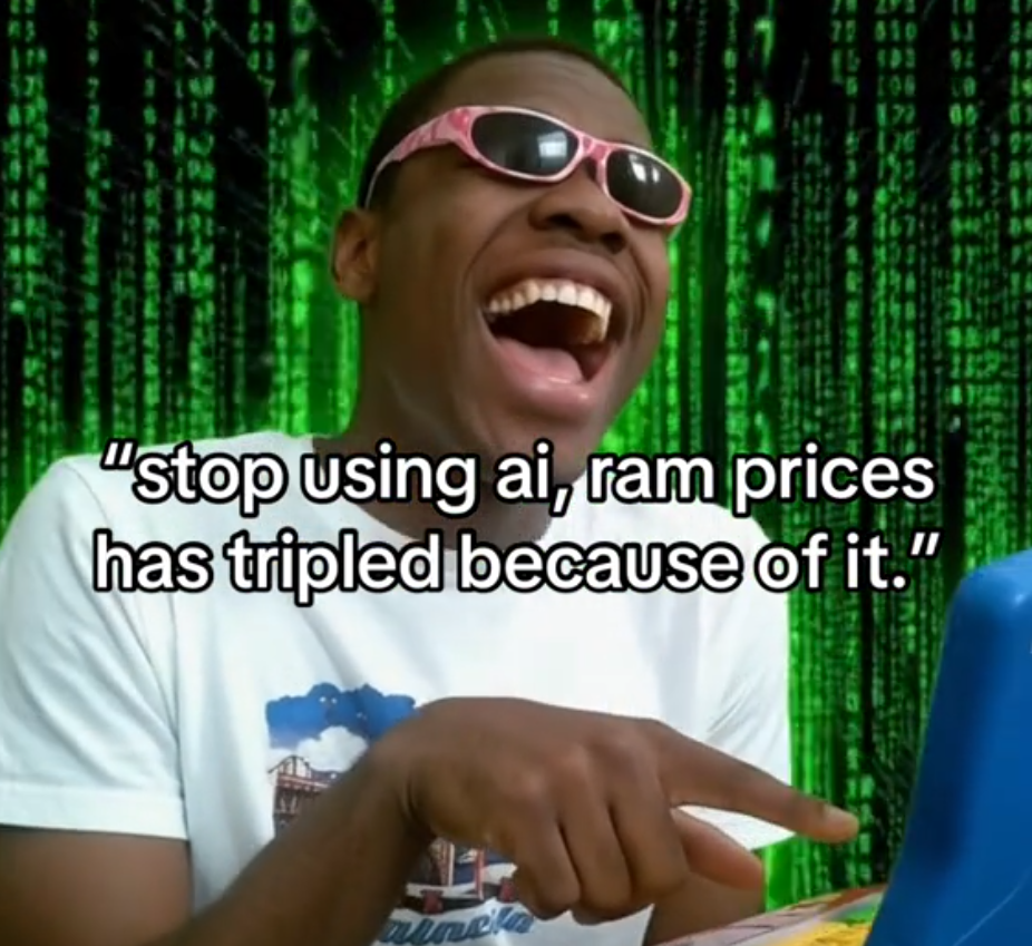 >>1063946 Чем быстрее эти вкатунцы нажрутся говна, тем быстрее ИИ пузырь лопнет и перестав окупаться. Эти гандоны уже и так память накрутили в 8-10 раз, даже старые плашки, которые на вряд ли используют, hdd стоит как SSD ппц.