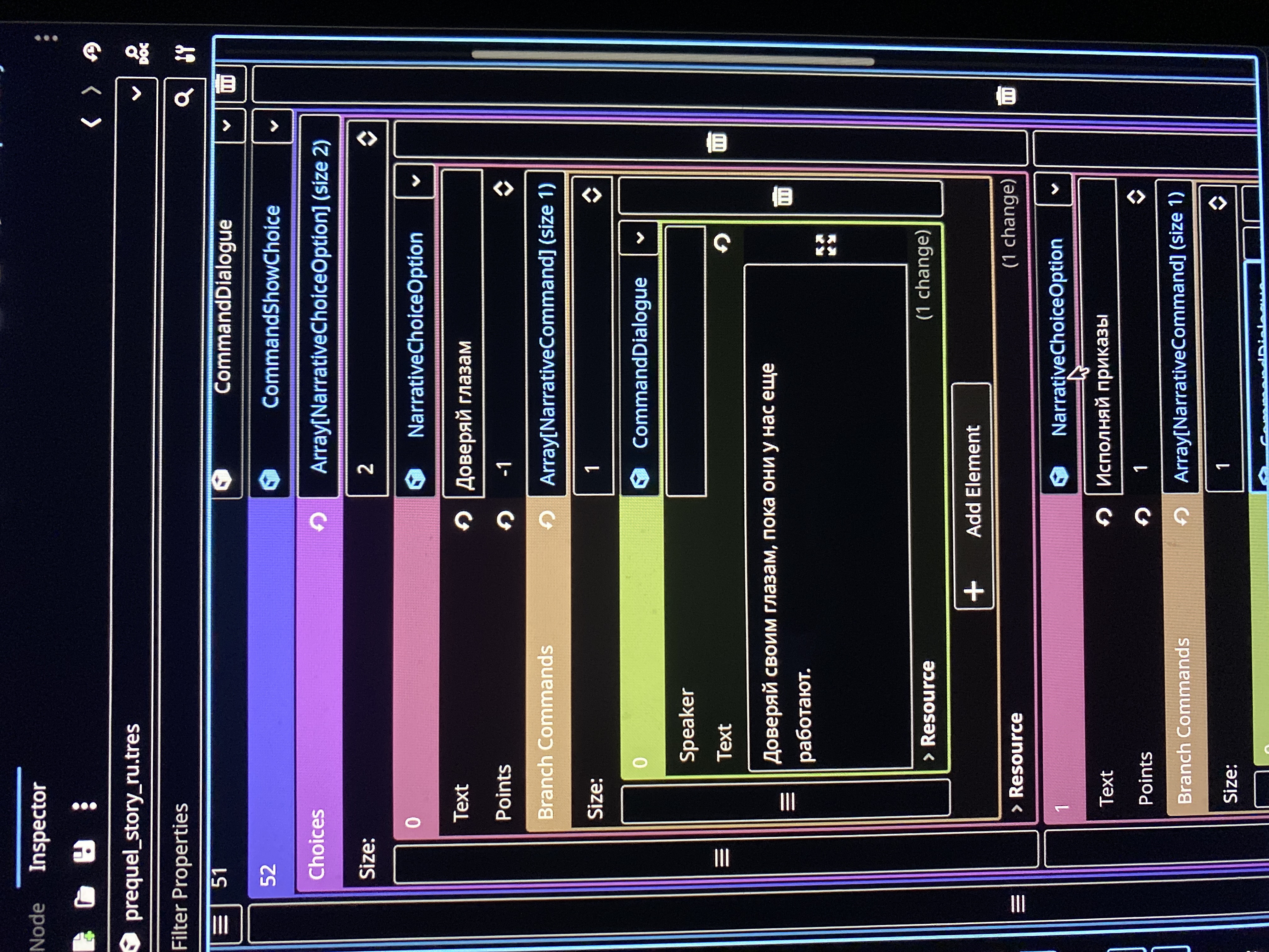 >>1064948 Там наверное кроме как через логику инспектора и создание в схожем стиле и не сделать графический сторителлер. Думал попробовать сделать аналоги блюпринтов из анрила только для сборки диалога и эвентов через ноды. На новогодних если будет время - попробую