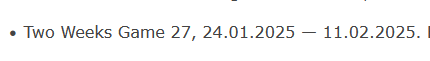 Предварительно с 01.02.2025 12:00 по МСК до 15.02.2025 12:00 по МСК будет проведен конкурс Two Weeks Games 29! Это конкурс игр, где приветствуются все: от кодеров вечных велосипедных движков до любителей Ren'Py. Любые жанры и движки разрешены, главное — сделать игру по теме. Можно участвовать соло или в команде.