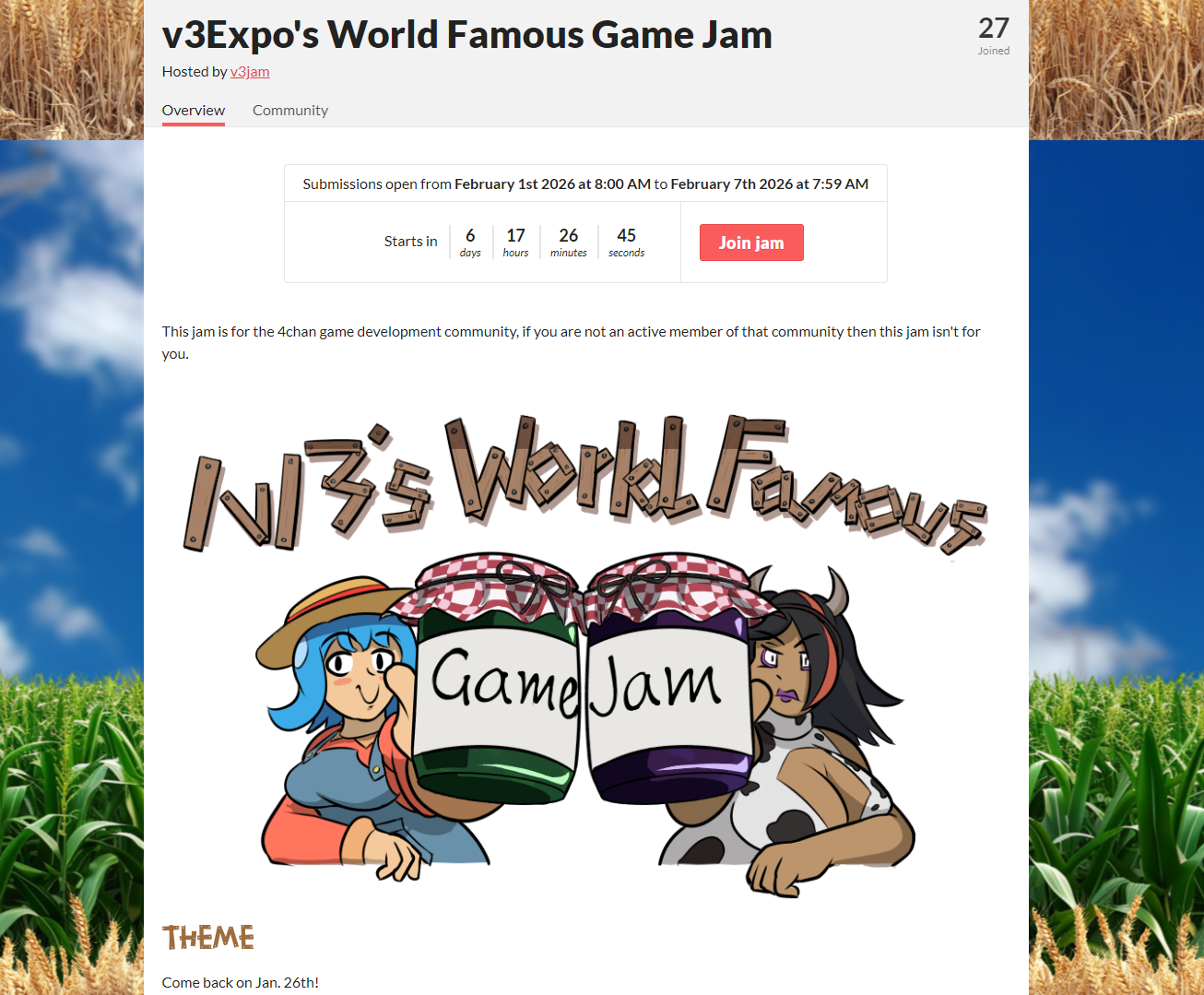 Тема конкурса будет объявлена в момент его старта как и список ачивок, а полный список судей и окончательная редакция правил будут оглашены 25.01.26.