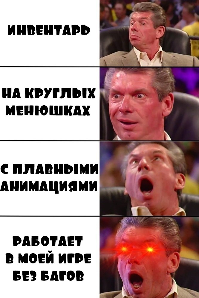 Также преимущество круглых меню в том, что площадь интерактивной области на экране зависит от числа кнопок в меню. В типичном сеточном инвентаре, если отдельная кнопка малюсенькая, то ты вынужден прицеливаться с помощью мышки в эту малюсенькую кнопку даже если она у тебя единственная на всём экране - это сильно раздражает. А искать что-то нужное среди сотен кнопок в любом случае неудобно, так что какой-то пользы от сетки всё равно нет. В общем и целом, сеточный инвентарь замедляет взаимодействие с игрой по сравнению с более быстрым круглым меню, и это даже с учётом того, что круглое меню можно красиво анимировать, а сеточный инвентарь слишком "жёсткий" для анимаций.