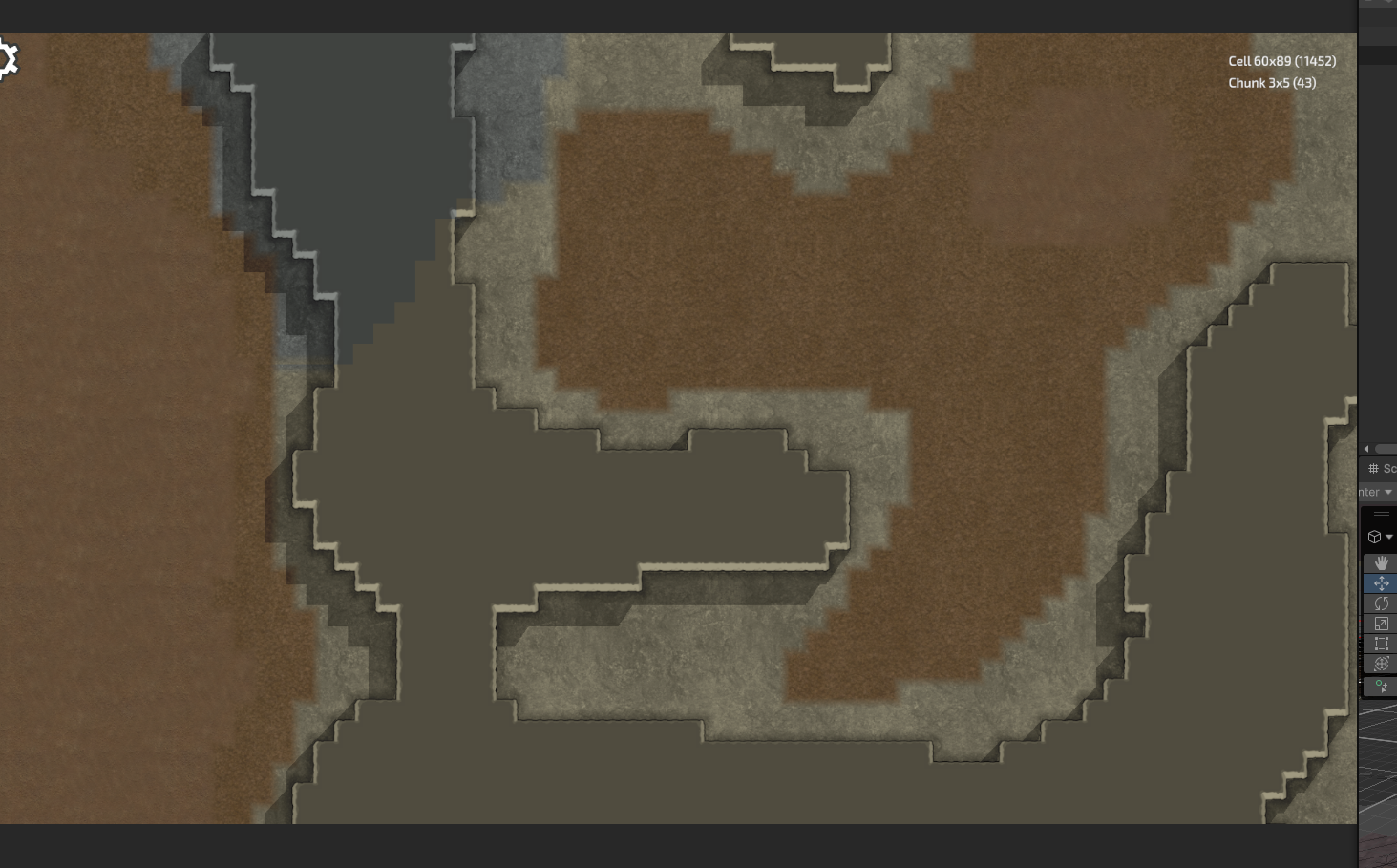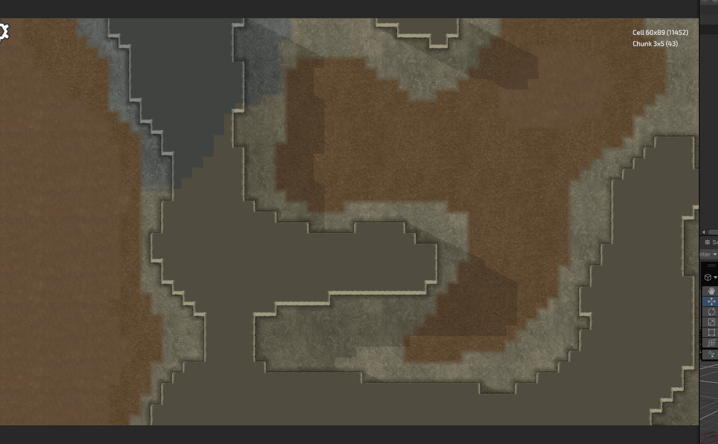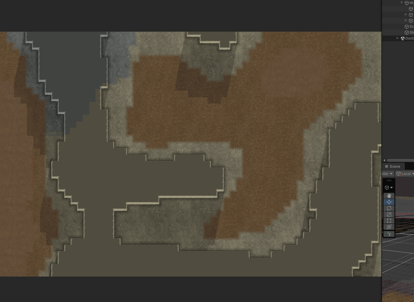 Доделал генгерацию верхнего слоя горных массивов, беру атлас 4 на 4 и индекс тайла передаю через uv2 в шейдер, далее отдельным слоем на углах тайла догенериваю в отдельный мейш филлер углов, чтобы отделаться 16 тайлами