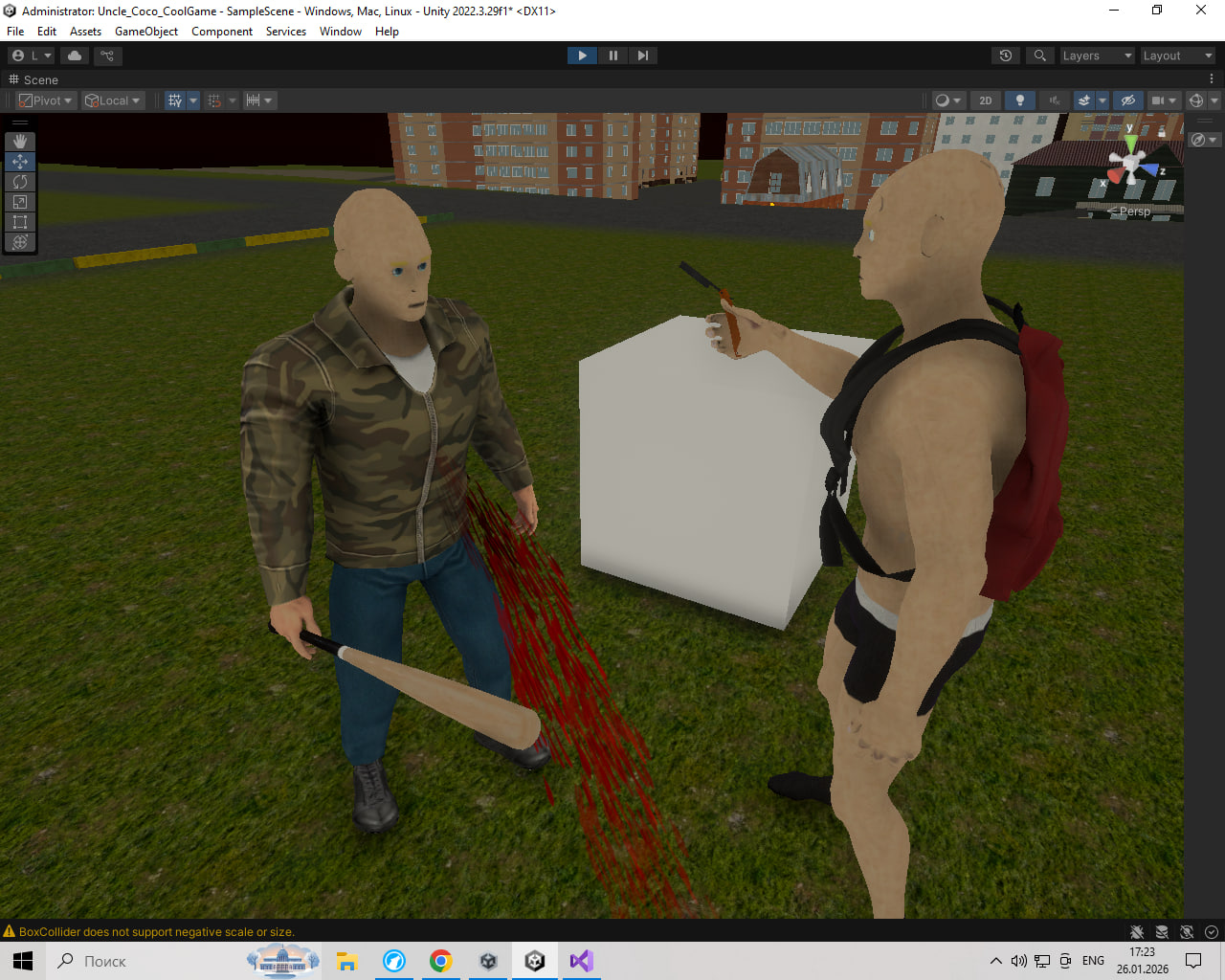 >>1074928 > ты рот литой делаешь, раскрашивая текстурой? Ну да, тут многое объясняется тем что так повелось. Сейчас думаю что не так сложно было бы всем рты делать, чтоб хоть как-то речь имитировали. Ну да ладно, слышал не стоит относится к игре как к последней, то есть если появляется идея переделать значительный кусок уже сделанного - лучше приберечь её для следующих проектов. На счёт гонок пока вот хзхз, может и добавлю транспорт для игрока, пока не нахожу причин его не делать. Хотя какие-то сложности он и стал бы вызывать, да. Но как я вижу - для боестолкновений можно просто сделать хп транспорту, чтобы в случае поломки он переставал ездить, а после взрывался. Но это так пока, размышления
