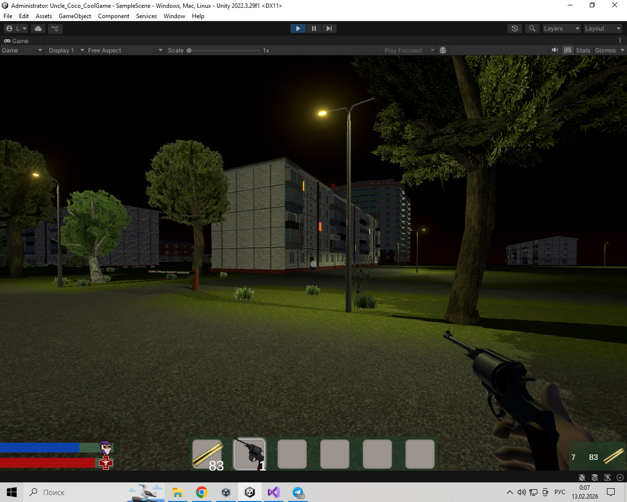 >>1073263 Как всегда забыл уже о чём писал, а о чём - нет. Замоделил деревья, фонари и дорожные знаки. В будущем сделаю больше, пока по ощущениям как-то маловато. Поигрался со светом, сделал систему включения / выключения фонарей и всяких ламп. Ещё по ночам в окнах будет зажигаться свет, так мир будет выглядеть менее пустым. Ещё доработал боевую систему, добавил возможность наносить дебафы разным оружием (пока только кровоток и горение). Но над боевой системой ещё работать и работать. Ещё поработал над началом игры, постарался сделать его более понятным