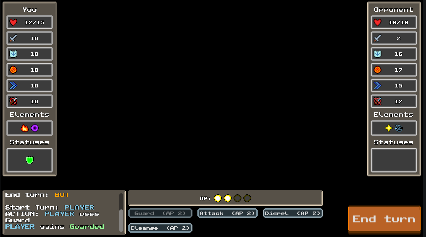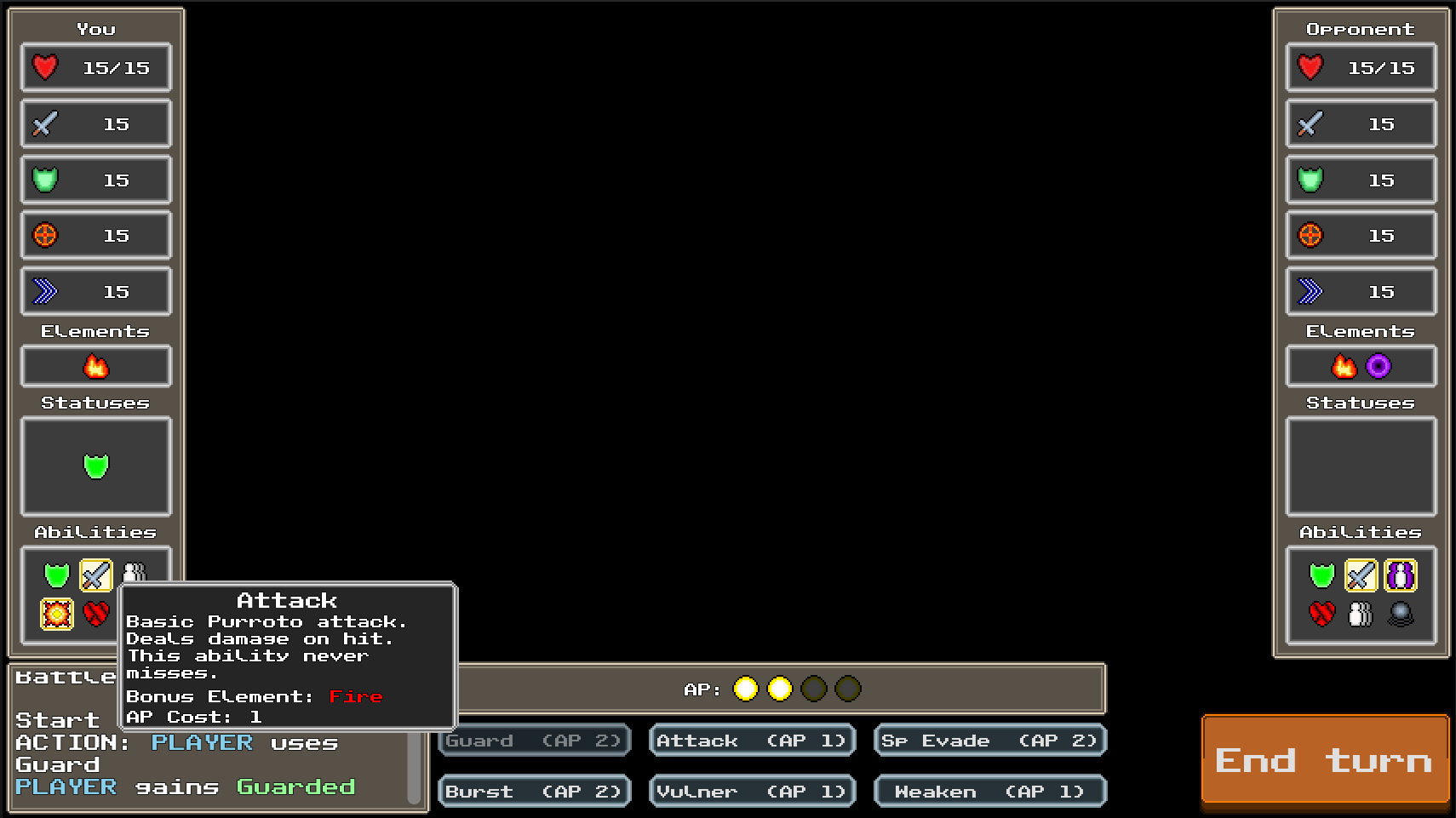 >>1074551 Перерисовал иконки, допилил интерфейс, добавил тултипы с описанием способностей, придумал название своим покемонам наконец-то. И отбалансил. Сейчас в среднем бой идет 4-5 ходов против ИИ на равных стататах. Причем ии вполне себе адекватно играет, я бы сказал мой винрейт против него с рандомными способностях 60-40. И самое главное, что просто спамить атаку невыгодно.