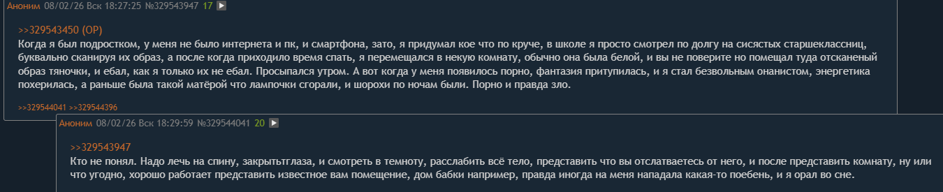 ты поверил в себя. решил, что сможешь завоевать уважение анона. потому что знаешь, что псевдоуважение на форумах и дискордиках не имеет веса и смысла. оно достаётся тебе бесплатно и без труда. здесь сидят те же люди, что на гамине и в дискордиках. ред они прямо сейчас сидит тут, и под маской анонимности какает тебе в тред