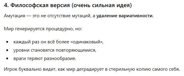 >>1072717 > дарю идею игры: >>1072278 (OP) > Темы конкурса: Босс подземелья, Мутация и адаптация.