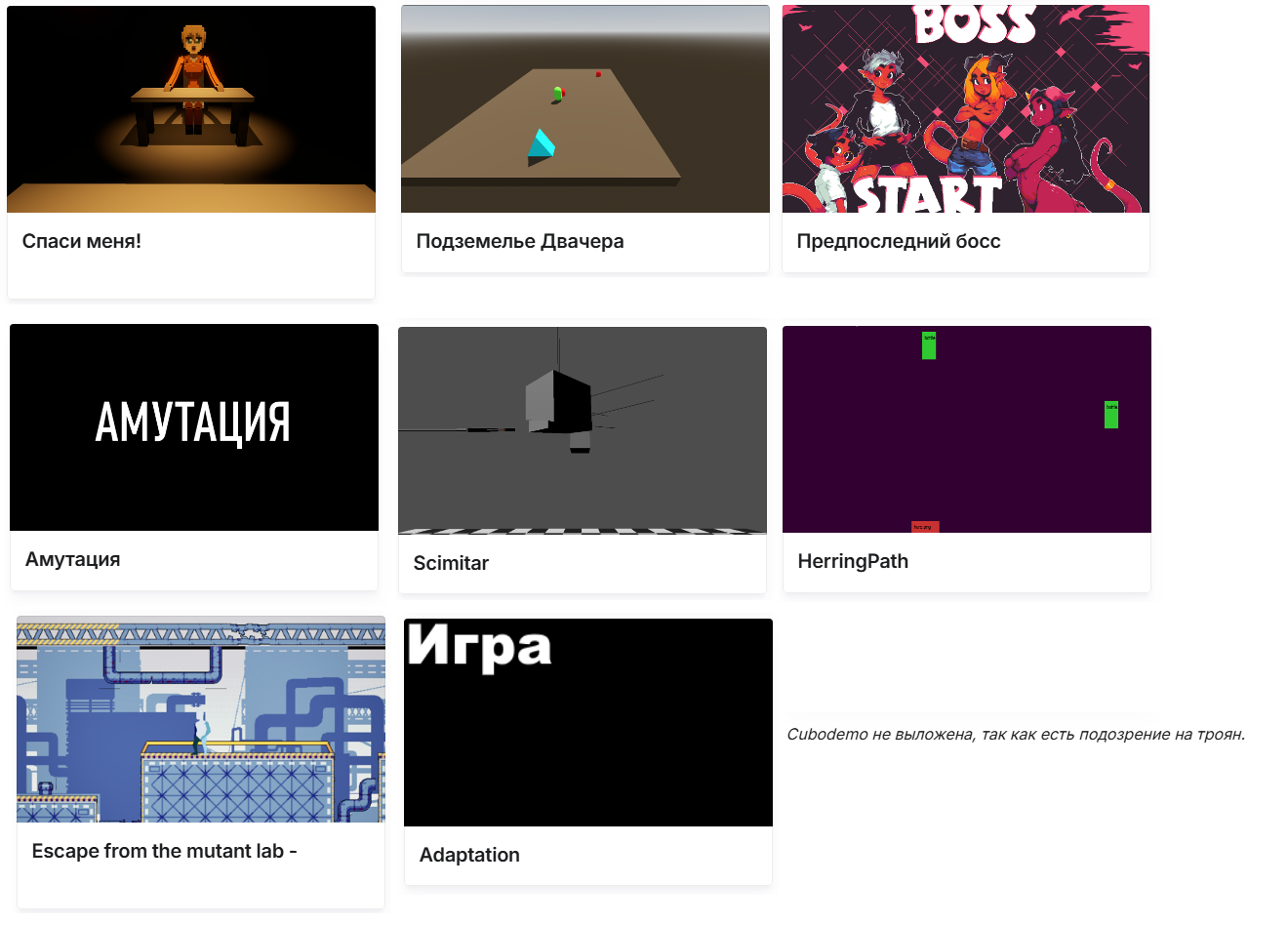 В общем список игр недошедших до финала: Спаси Меня! Демо Подземелье Двачера Предпоследний босс Амутация scimitar HerringPath Escape from the mutant lab adaptation