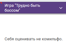 я понимаю что ты хотел как-то по-другому, нитак как фсе, интерпритировать данную тему, однако... соответствие теме - субъективная оценка и по моему мнению ты справился с раскрытием тем на 0/5 это при том что я оценивал игры относительно всех игр на твг,а не относительно своего игрового опыта за жизнь, то есть нашел лучшее соответствие и худшее, где максимальный балл был у жуковыблядка. некоторые темы задают конкретный сеттинг. это неприятно, но для того и проводятся такие конкурсы. твоя игра выглядит как будто ты поставил себе челендж сделать игру не глядя какая была тема.