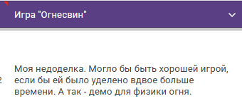 >Игра наверняка бы получила бы первое место, если бы была сделана на конкурс за две недели. >Но это заготовочка.