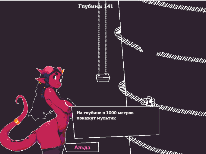 Суть игры должна была быть проста. Автокликер, с постоянным увеличением заработком золота и открытие новых ярусов в данже, как на первом скриншоте. Но в игре должна была быть еще одна валюта, условные примогемы. Их зарабатывать приходилось бы только за оперделенные действия или стандартно, раз в секунду один примогем. Далее примогемы бы расходовались для спуска на дно данжа. 1 метр за один примогем, как на втором скриншоте.