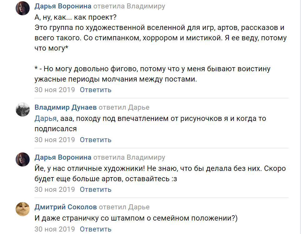 Блин, вот кто-то играет в это? У них там по ходу уже куча глав, просто куча текста хуярит с одной картинкой, сразу же баги (текст остался справа от картинки, окошко маленькое). Это же не игра по сути, а книжка с картинками. Читать я ее конечно не буду. Несколько человек пилит, художник хороший, поди миллионы заработали, а я не в курсе!
