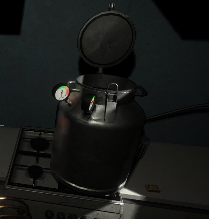 Спасибо за отзыв! Все правильно - на плиту и холодильник (и пару моделей ещё) тупо не успели найти нормальных рефов. Датчики же добавили чисто как игровую условности, чтобы у игрока была возможность не взорваться лул. Плюс на момент создания демки мы ещё не определились с временным промежутком. В декабрьской демке таких условностей попробуем избежать.
