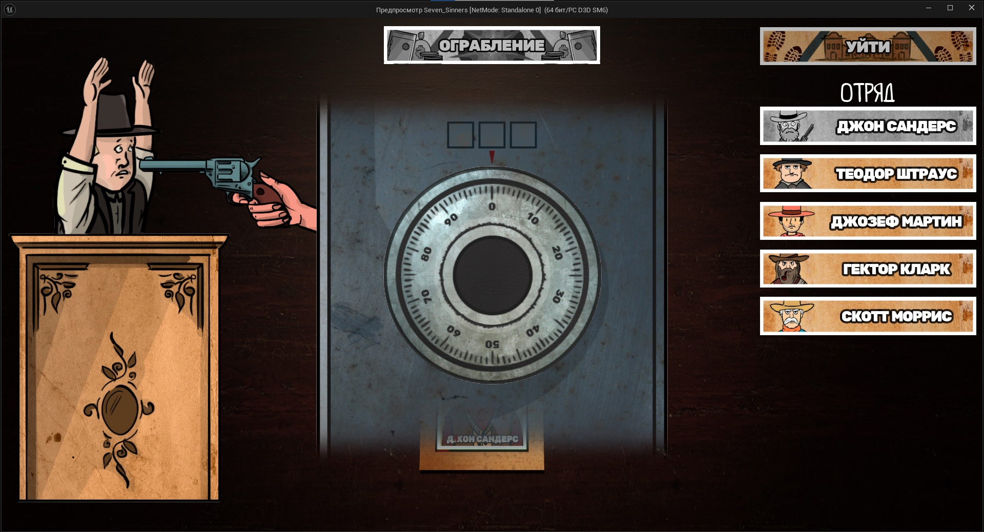 Игра: Seven Sinners Описание: qte\rouglike с элементами rpg. Есть глобальная карта и тактическая карта, вы играете за отряд грешников Дикого Запада что бредет по большой дороге в поисках большого куша. Тред: https://2ch.hk/gd/res/1013611.html Контакты: @Supermind7 [email protected]