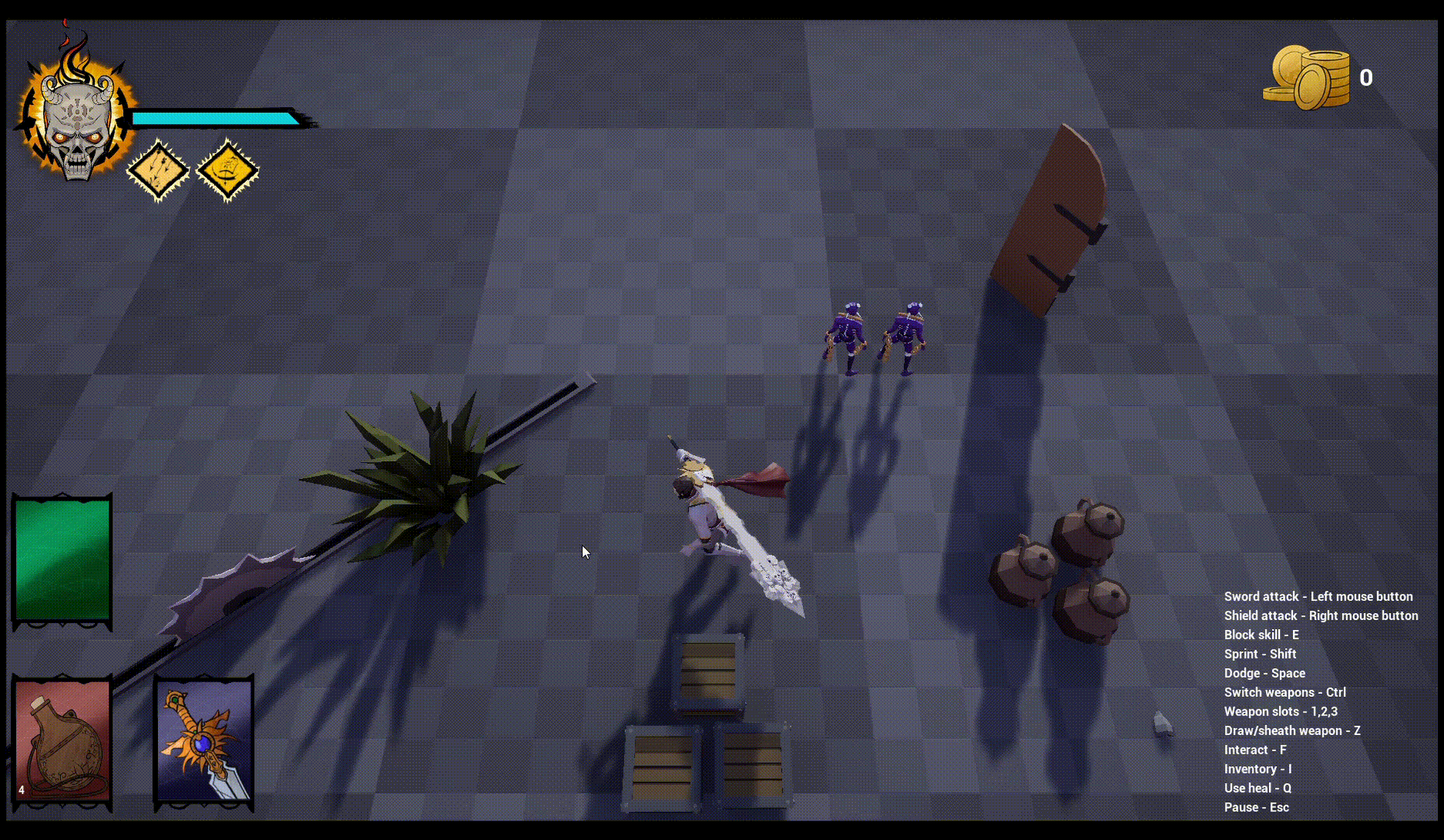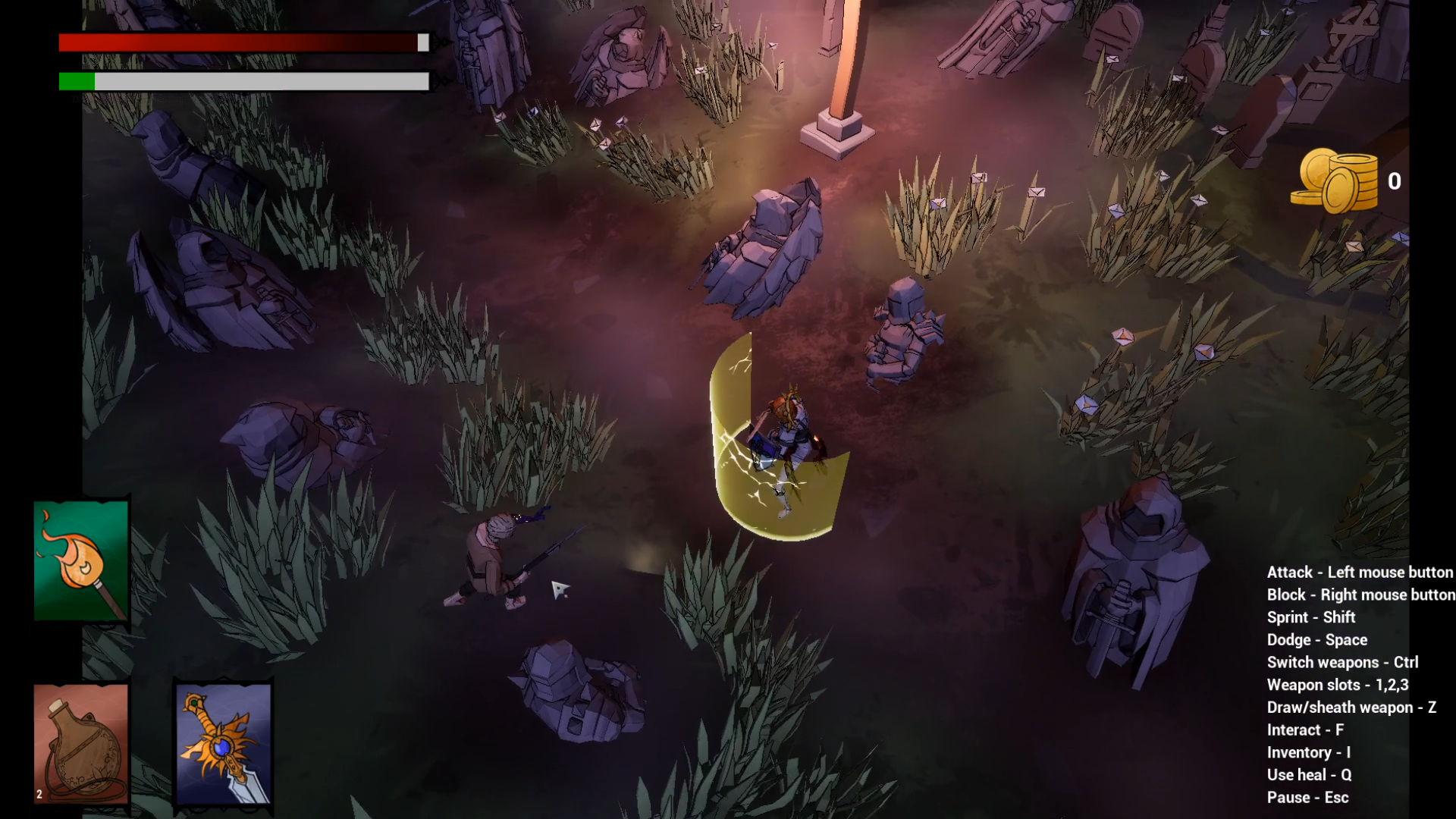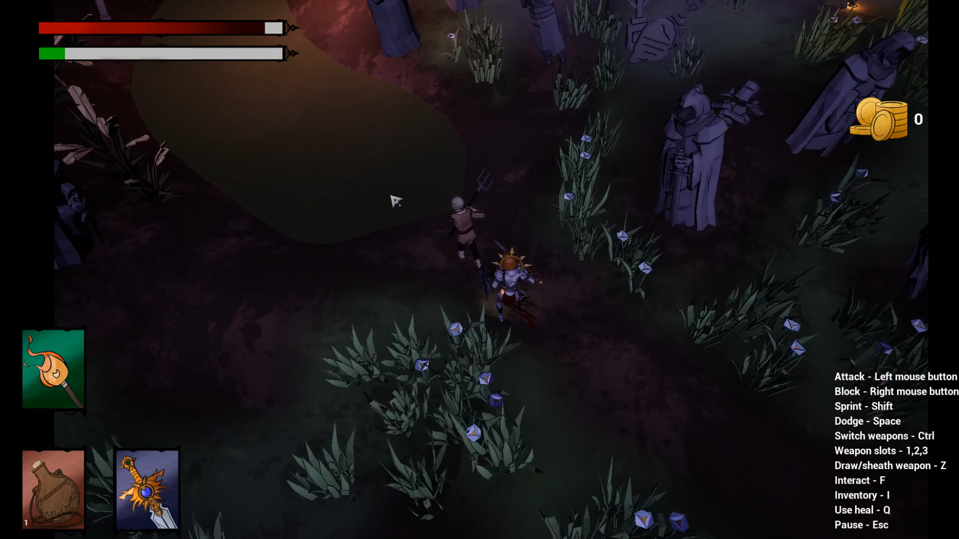 Почему именно соулс-лайк экшон? Тут то, самое из-за чего, пришлось прекратить общение. Мы очень долго вырабатывали геймплей и "флоу" игры. Я как руководитель, заморозил создание контента до тех пор, пока не прозвучит "Вот оно!" Сейчас, есть четкое понимание. и почему больше нельзя сравнивать с Дарк соулсом. Из механик ДС остались только, "уникальный подход" к противникам.