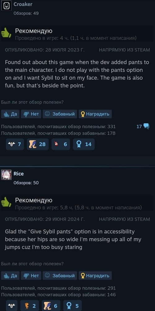>>904604 >но отзывов мало и они не очень 20 это относительно нормально, не 3 ведь. Cursed Pantsu столько же набрала в общем-то по качеству графона и геймплею игры примерно равные.