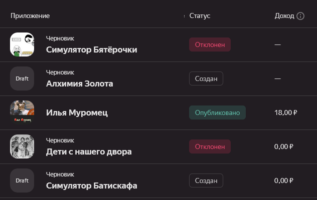 вот вы хернёй маятесь заливая свои игорки 8 рублёвые. в надежде на что ? там топ 100 игры приносят зп дворника в мск. Вы как дети малые..... хотя постой...... почему как