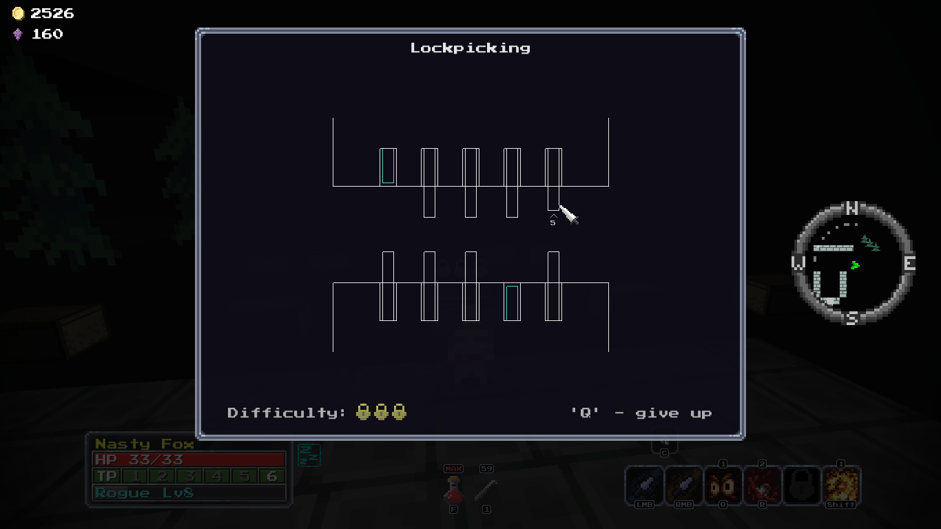 Пилю спрайтосы для системы взлома, и чет застрял на ловушечных спрайтах, никак они у меня не выходят, вот лучшее что из них сейчас получилось, но всё равно всрато смотрятся. Там потом ещё что-то вроде цепей будет, по которым будут двигаться эти активные части триггера ловушки. И возможно, этот триггер смотрится немножечко аутофплейс, так сказать, особенно учитывая что взлом замков доступен с самого старта, когда игроки ещё даже луки не открыли.