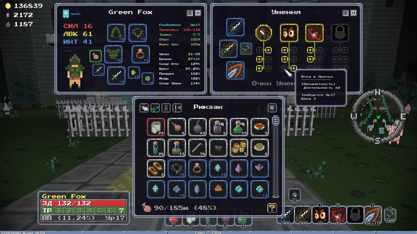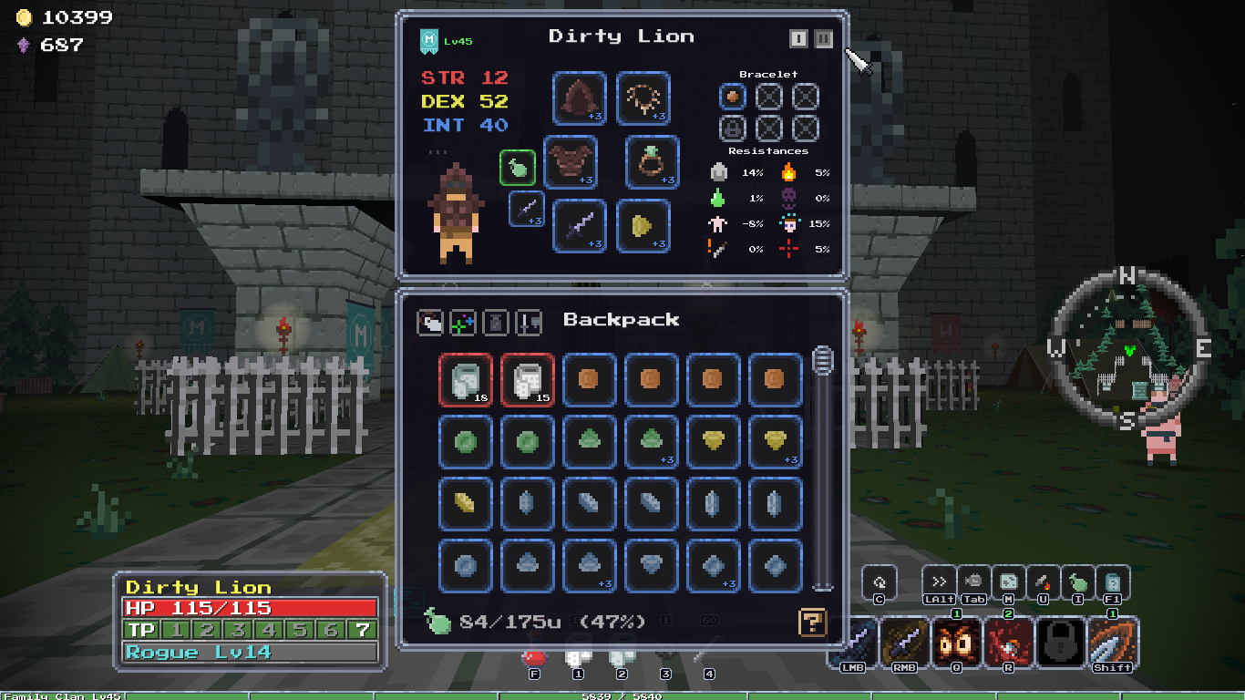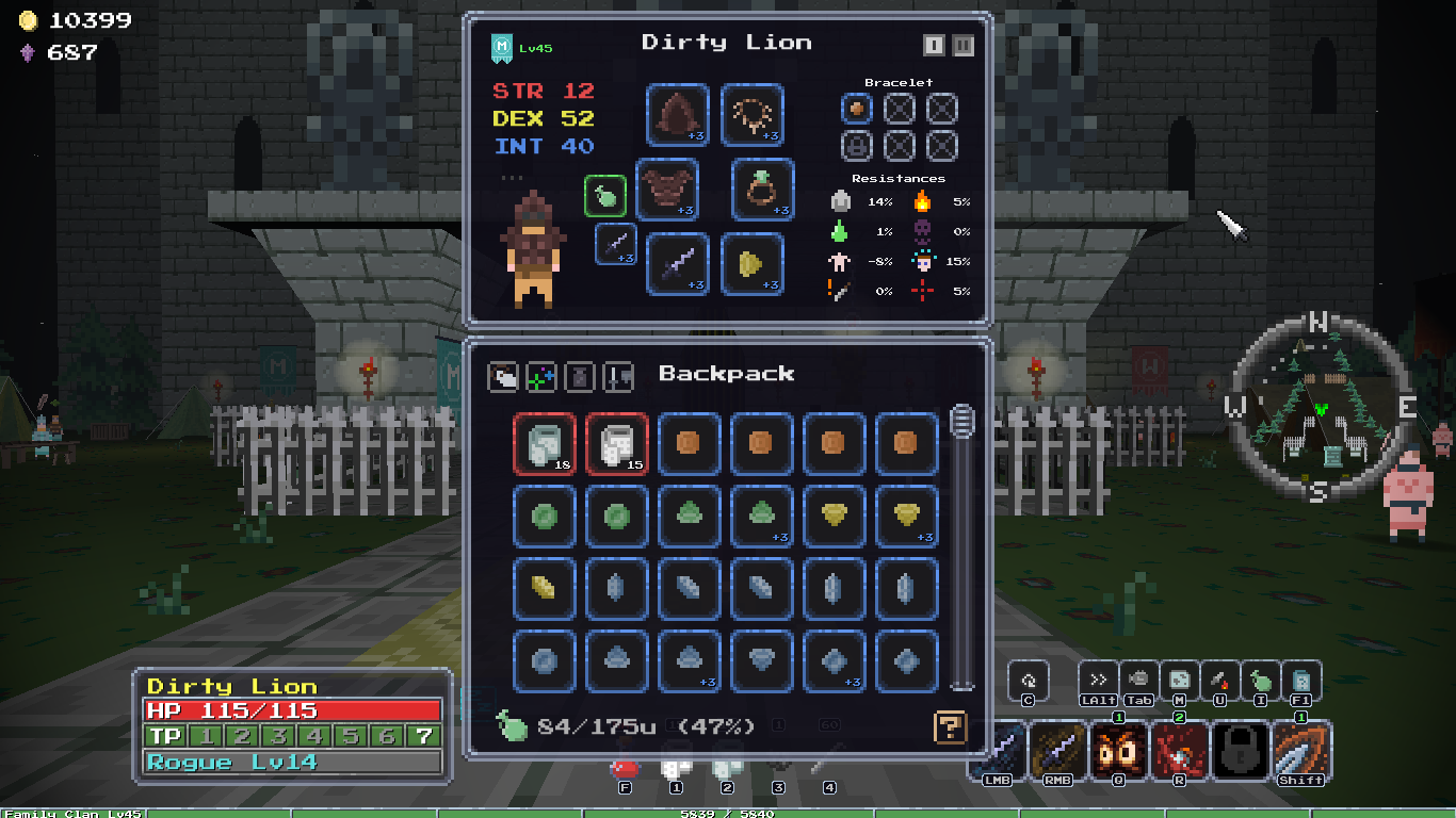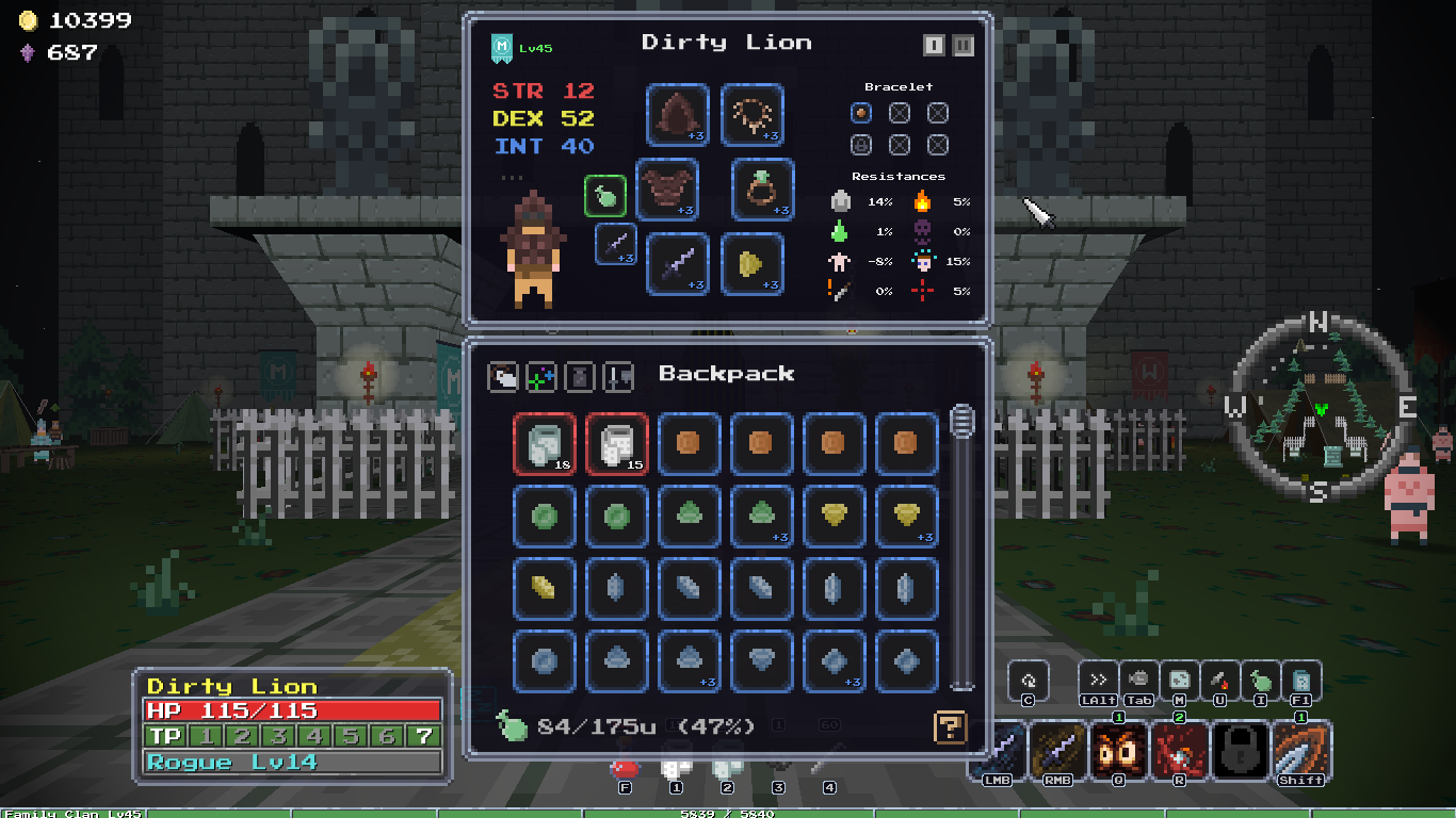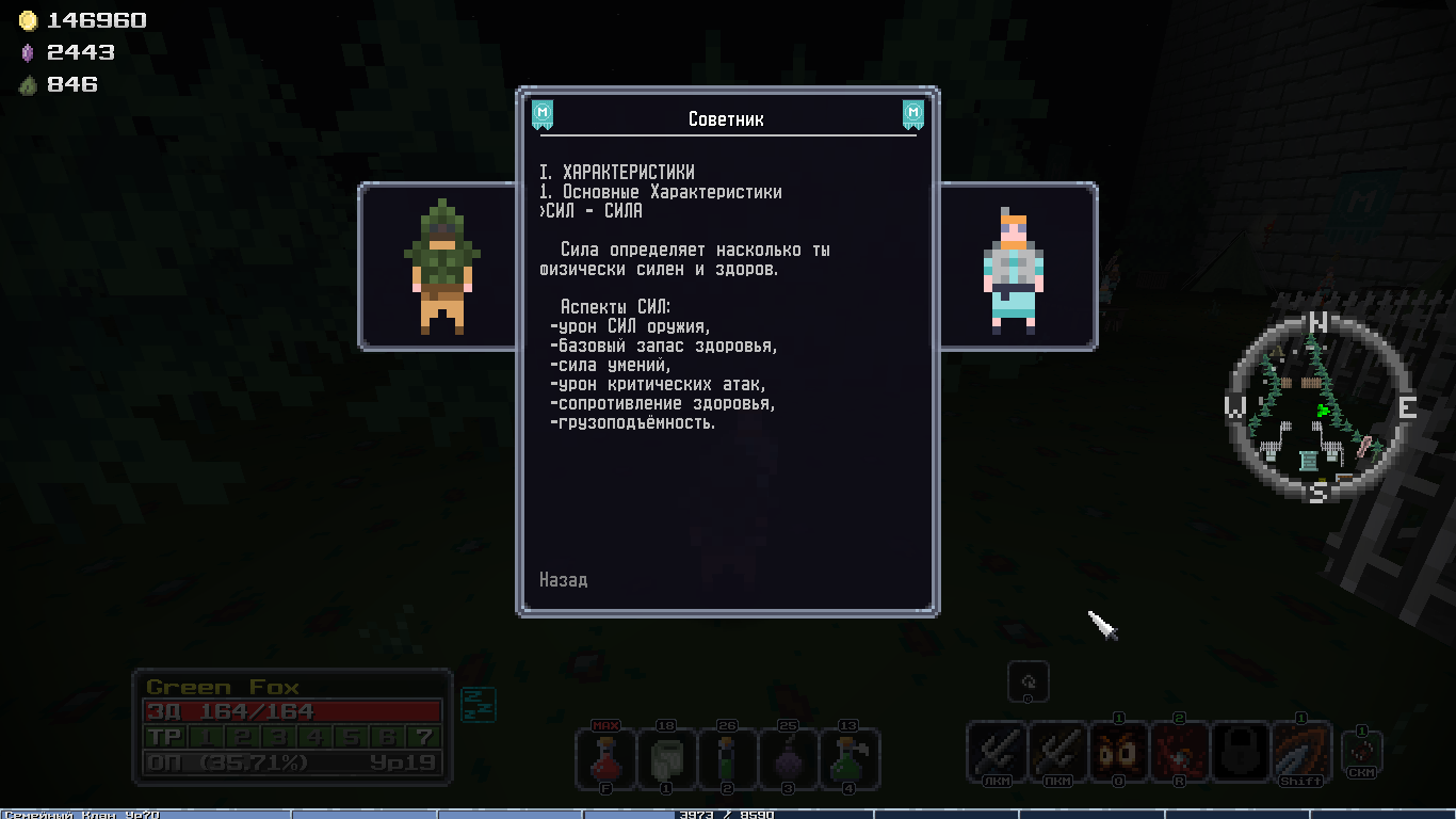 Добавил новый квест, после которого появляется новый алкаш торгаш в клановом имении, у него можно купить новую сумочку зеленого качества и цвета, пусть гоблоиды завидуют твоему стилю! А ещё добавил новую врожденную особенность, "Везунчик", 10% шанс двойного дропа с сундуков, шанс выжить самому +10%, редкая особенность.
