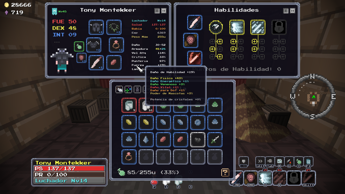 ¡Hola! Навернул в этом месяце внезапную локализацию на испанский. Пока перевёл всё кроме квестов, справочника, записок, ачивок и некоторых диалогов. Планирую до конца месяца успеть закончить. Параллельно, чтобы это всё не было совсем уж бессмысленным набором слов, прошёл ускоренно базовые уроки по еспаньолу на дуо линго. Наверняка всё будет не так гладко как хотелось бы, но это по пути порешаем. Параллельно и некоторые всратые косяки английской локализации поправил.