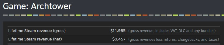 Прошёл год Раннего Доступа, пора поделиться результатами. (Из этого моя доля на руки $6519) Думаю что к зиме, либо в зимнюю распродажу добью Net Revenue до 10к, и тогда, по словам других разрабов, стим наконец снимет плашку "Функции профиля ограничены". Надеюсь добраться до полного релиза к концу 2024го, либо уже в первой половине 2025го.