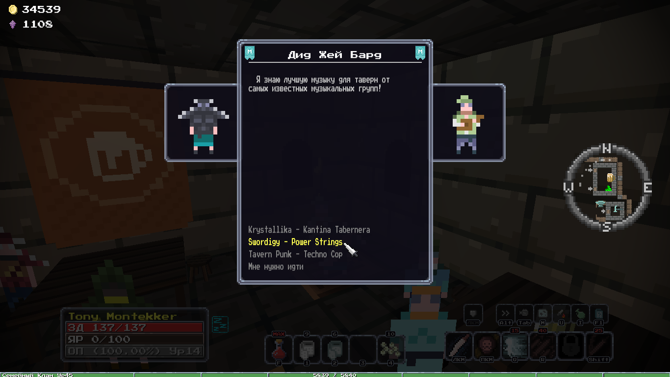 >>911403 >>911452 Добавил, в общем, нпц барда в таверну, у него можно выбирать трек который там играет. Пока 3 трека, потом ещё постараюсь более традиционную нормальную музыку для таверны написать.