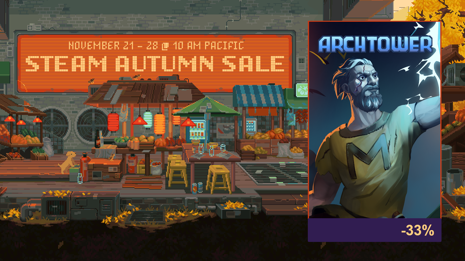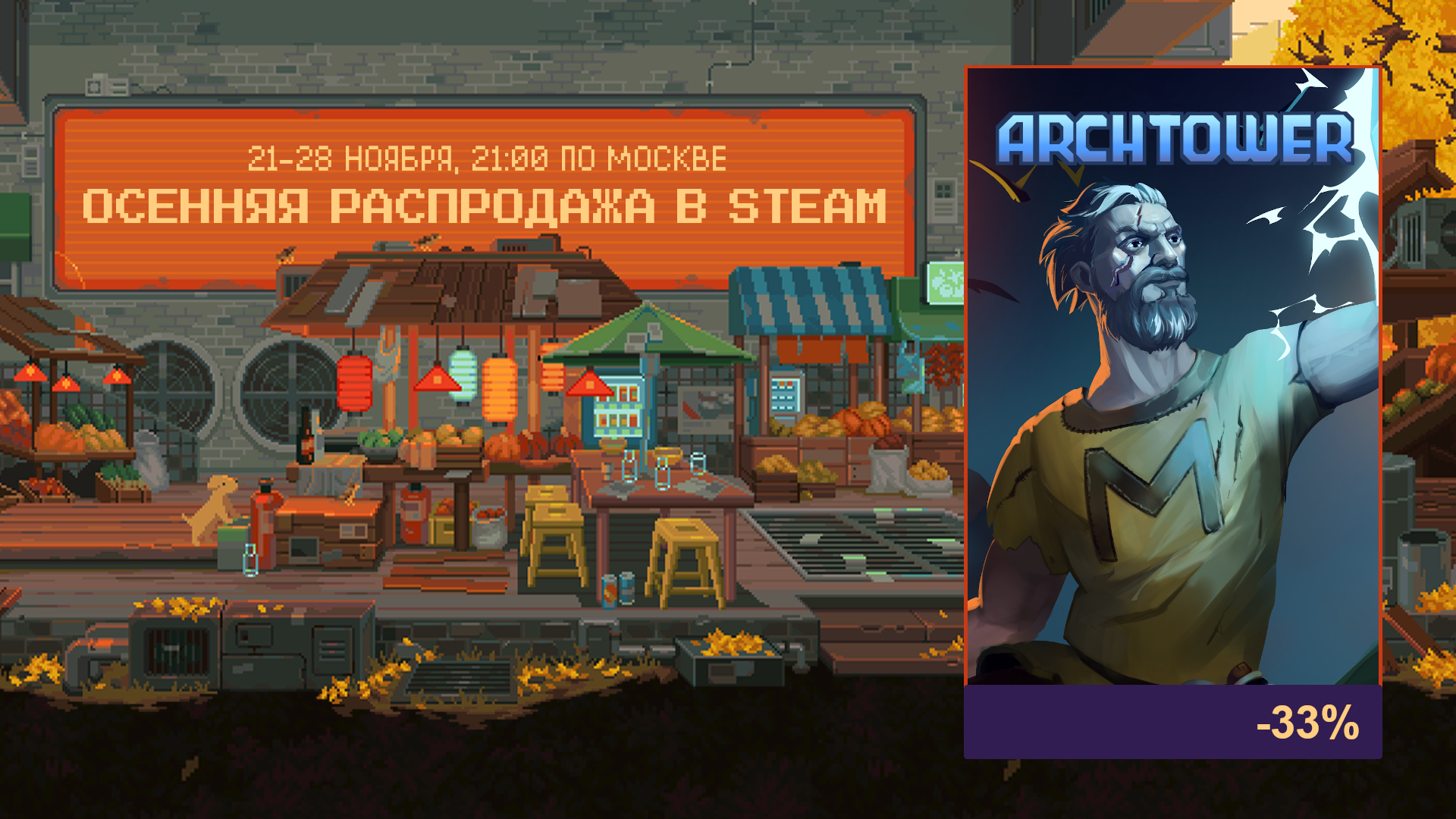 Оформил теймплейты на осеннюю распродажу, в этот раз они пиздатый арт нарисовали, не то что прошлой осенью у них калище полное было. Теперь с тремя языками в падлу уже было цены на каждый язык редактировать, тем более с испанским, там разные цены и валюты в разных регионах, даже после объединения некоторых валют в региональный доллар. Просто размер скидки обозначу и хватит на том.