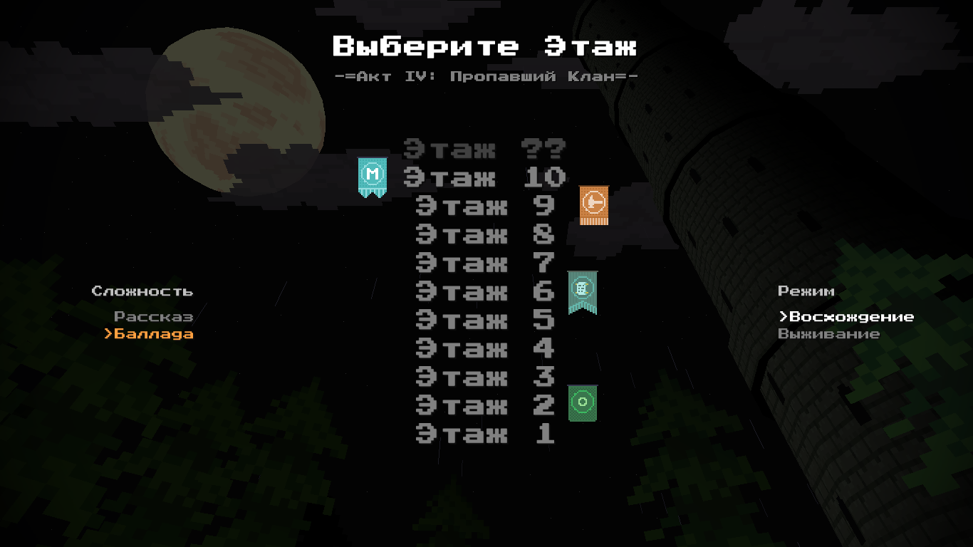 Думаю как лучше сделать, чтобы уместить дальнейшие этажи. Всего будет 17 этажей. Думаю варианты по достижению списка больше 10 этажей: а) сжимать размер текста этажей в жва раза (до размера названий сложностей и режимов) плюсы - всё влезает сразу минусы - этажи уже не будут так выделяться на фоне остального, придется и баннеры фракций жать б) сделать две "страницы", список 1-10, наверху стрелочка чтобы перелистнуть на 11-17 и обратно по тому же принципу плюсы - этажи выделяются, не надо давить баннеры минусы - идея пролистывания этажей почему-то мне кажется всратой в) сделать колесок прокрутки и пролистывать колесиком этажи плюсы - не так всрато как "б" вариант минусы - лень так делать, всё ещё прокрутка