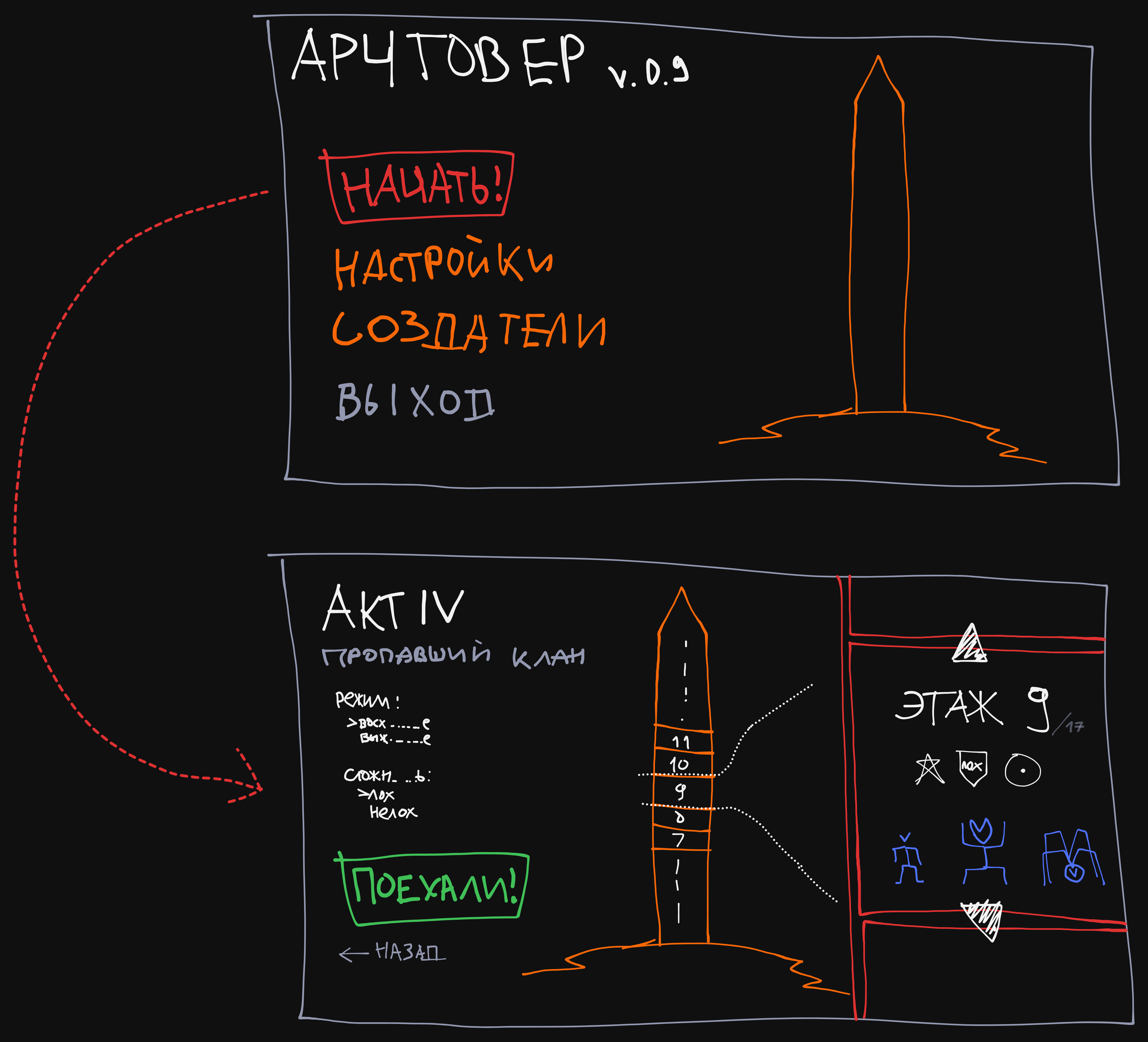 >>960116 У меня кстати были давно мысли про подобные варианты, особенно со срезом башни, чтобы ты примерно видел что там хотя бы по цвету интерьера. Возможно что-то такое и сделаю потом. Единственное думаю режимы и сложность не влезут в одну высоту, режимов возможно будет много, но подумать есть куда. Благодарю за советы.